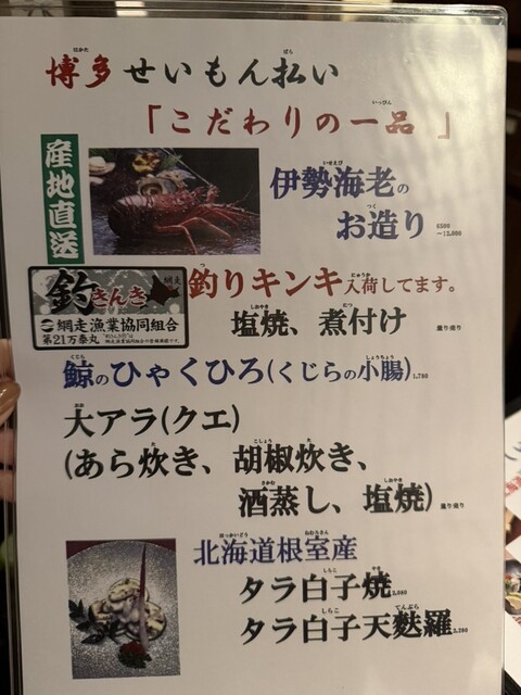 ベテランの店員お姉様方がわからないメニューや、時価の値段や、量とか産地なんかも聞けば教えてくれます。