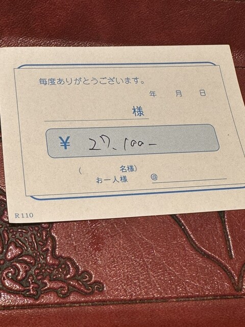 今回は少しお高めだったけど(←たくさん食べたからと酒の祭り?のチケットも連れと2人で数枚買ったから)大体1人1〜1.5万くらいの予算で食べられるお店だと思います。