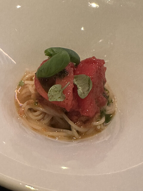 予約の時の要望としては、メロンがアレルギー、嫌いな食材はパクチーとアナゴ。もし可能ならカラスミスパゲッティ食べたいです。とオーダーしておりました。
