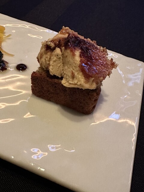 フォアグラムースが乗ったパン、美味しすぎて言葉にならない。