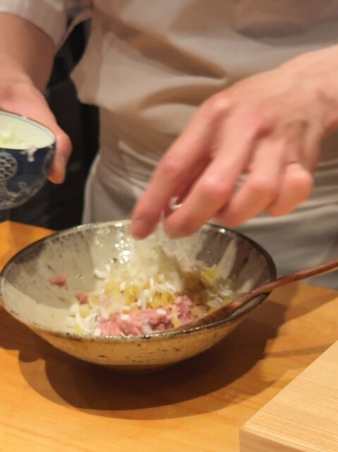 ⚫︎手巻きのネギトロ、白ネギとたくあん