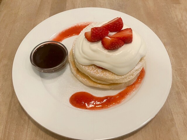◼︎ 季節限定「いちごとアーモンドチョコソースのパンケーキ」¥1,650