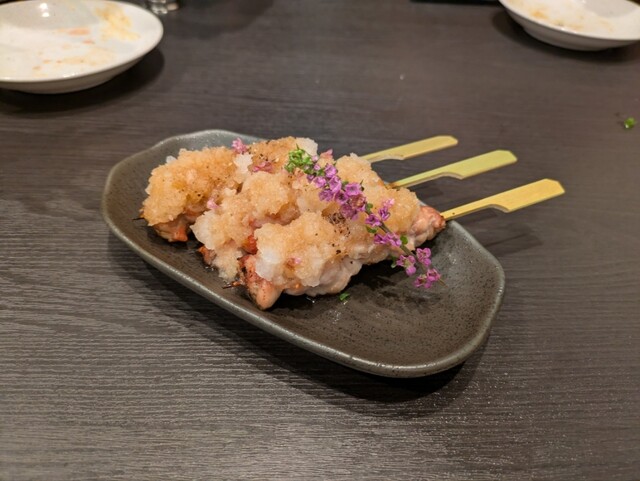 食べログやWebサイトでもあまり書き込みは多くなかったのですが、少数ながらもコメントの質が高く、好評の声が多かったので、自分の勘と先人の声を信じて入店。店内はテーブル・カウンター共に埋まっており、最後のテーブルに我々は着席しました。混雑していることもあり、提供に少し時間がかかっているようでしたが、そんなのはどうでもよい程どの料理も美味しい!!サラダは塩のみで味付けされたものが提供されていたのですが、(ドレッシングも用意されている)それでも料理として成立していましたし、串は貴重な部位(つなぎや鶏の背中?等)が使用されており、新たな発見が沢山ありました。特にカバーにも掲載しているそぼろ炊き込みご飯!!これが本当に美味しくて、〆の一杯のはずが、食欲をそそり過ぎる逸品でした。