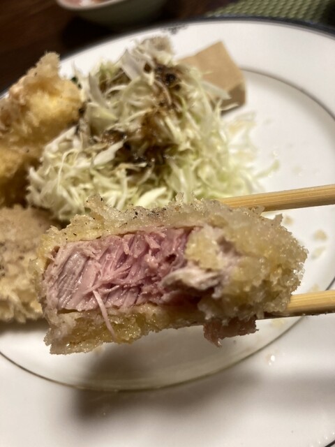 低温調理で中まで火を通さず、素材の味を最大限に活かし、衣が調味料と旨みを包み込む役割をしてる。完璧に計算されたフライやねん。
