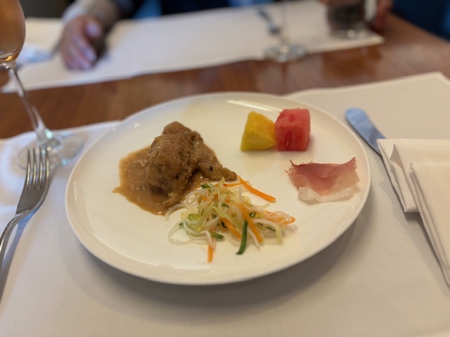 まずはダイニングで食事、有名なワンタン麺を頂きます。麺が若干固かったですが美味しい。