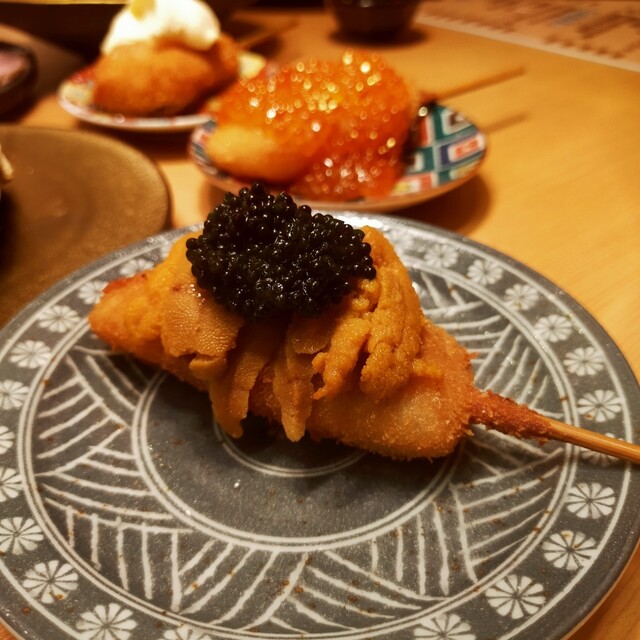 手頃な串から、リッチなうに、いくら、キャビア添えなど、食べ比べが出来るのが楽しいです。一本から頼めるのは嬉しい。