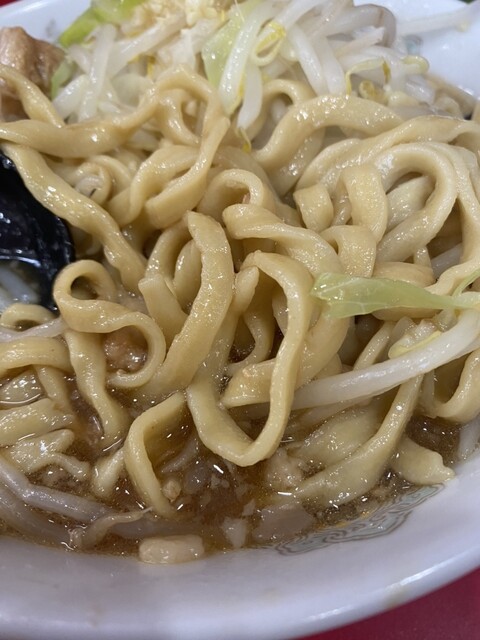 麺は目黒二郎をしっかり茹でたような、ゴワっとしながらこしがあってめっちゃ好き!!麺が口の中で暴れる感覚でモグモグ食べる感じ。
