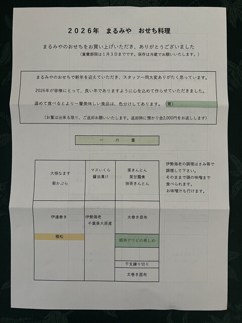 お重を返しに行くと¥2000のキャッシュバックがあります