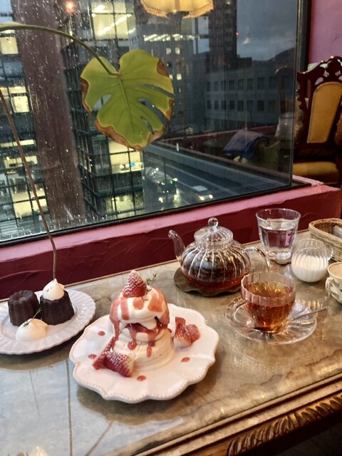 夕方にお伺いしました。寒い雨の日だったからか空いておりほぼ貸切状態でした。店名にもなっているカヌレはザクザク系でしっかり食べ応えがあります。めちゃめちゃ美味しいです。パブロヴァというお菓子もお勧めされていたのでいただきました。生クリームとメレンゲでできたかなり甘めのお菓子ですがしつこくなく美味しくいただけました。ビルの5階で京都市役所前の街並み〜山並みを見渡せる眺望もとても素敵です。店内の世界観もとても可愛いのに重厚感があり落ち着きのある居心地良い空間です。