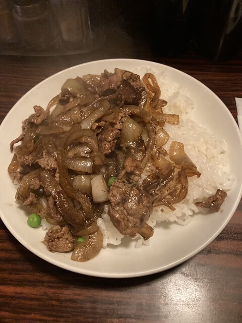 牛肉と玉ねぎ炒めにデミグラスソースを