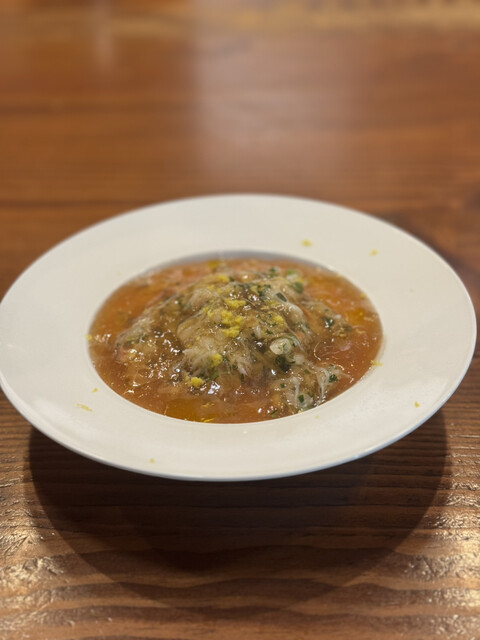 ズワイガニと根セロリのシャキッとした食感が最高甲殻類のジュレも相性抜群!!