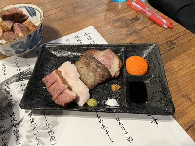 ・鴨肉のチャーシューは程よい柔らかさの食感で味わい秀逸。