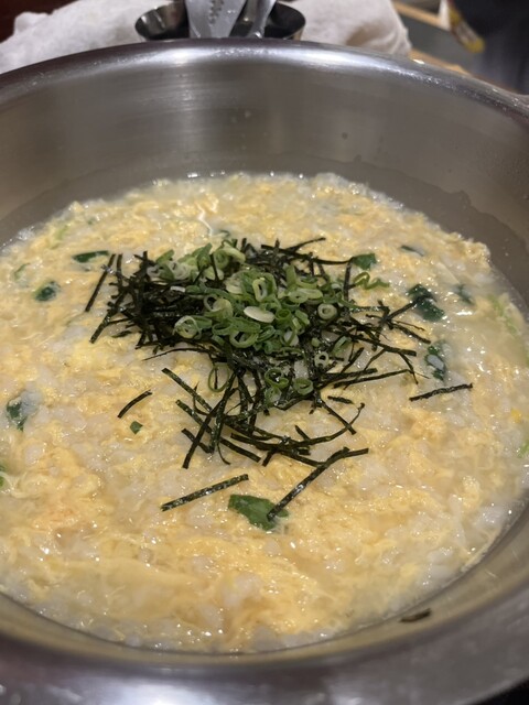 締めの雑炊は卵と三つ葉の出汁を楽しめる雑炊。