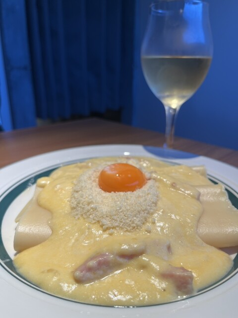 一枚麺のカルボナーラパスタが1番に食べてみたくて(*´ω`*)
