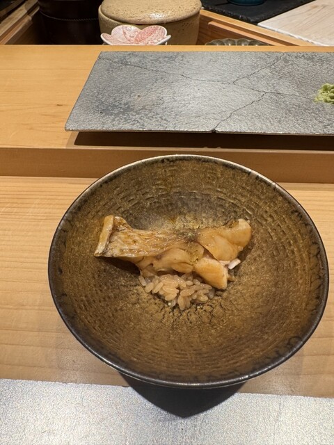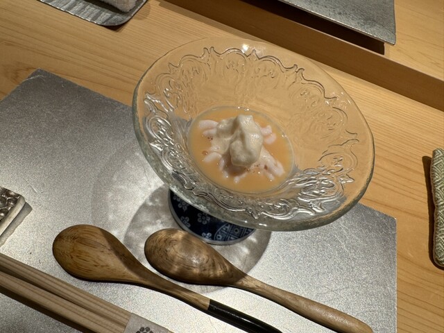 食べ終わるとご主人が泡ソースにシャリ玉を入れて
