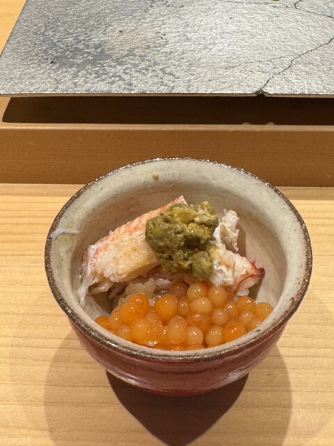 火を通したイクラに毛蟹と味噌、火を通したイクラは