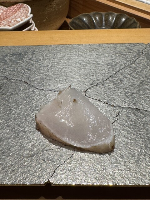 大吟醸につけたカラスミ。寿司栄の定番で毎回必ず