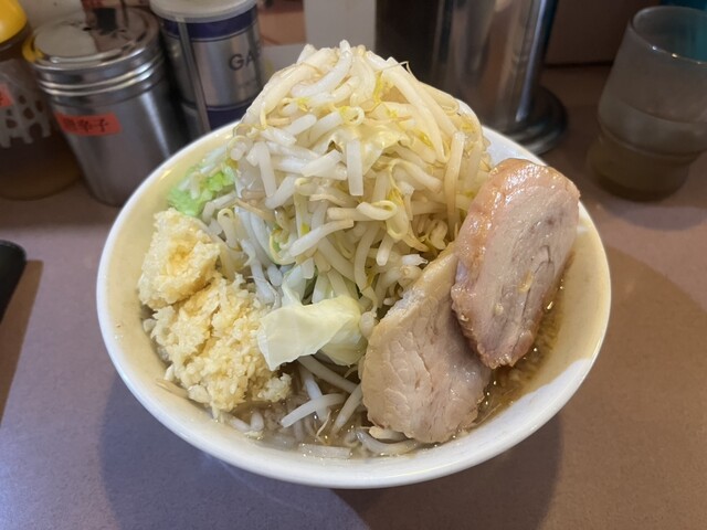 ラーメン小 野菜多めニンニク多め 一味をドバッ!