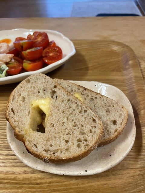 購入したのは、いろいろナッツの量り売りの半分。ゴーダチーズが真ん中にごろんと入ったチーズと表記されたパンの2つ。二人暮らしなのであまり欲張ったことはできないなあと絞り込みました。
