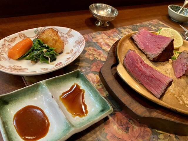 ガーリックのバターがなんとも美味しい。。ステーキソースでもなく、こんな食べ方は初めて!
