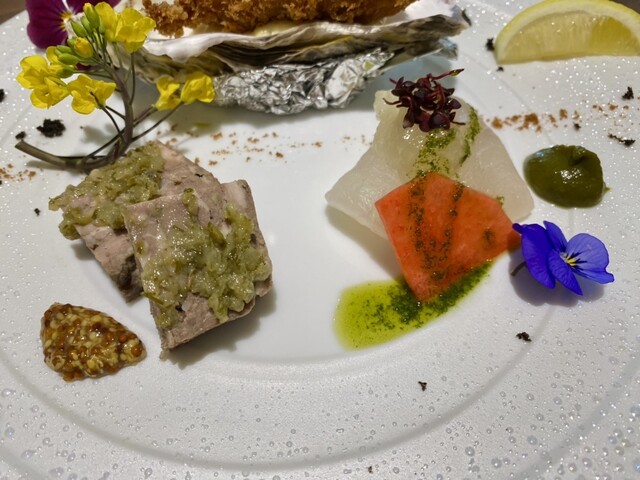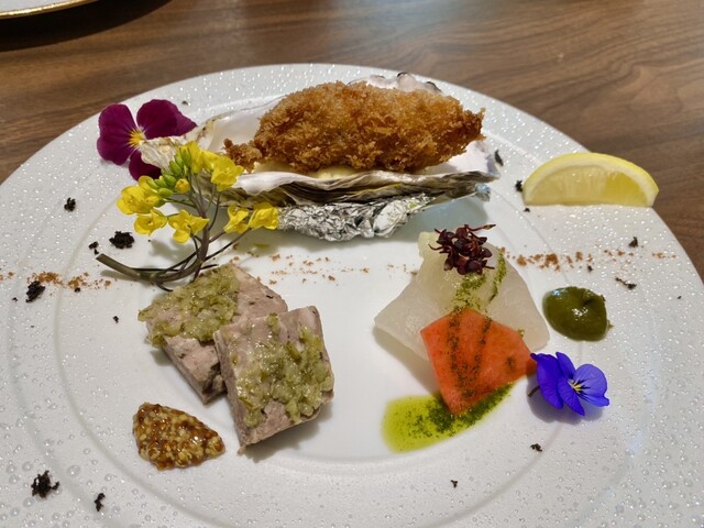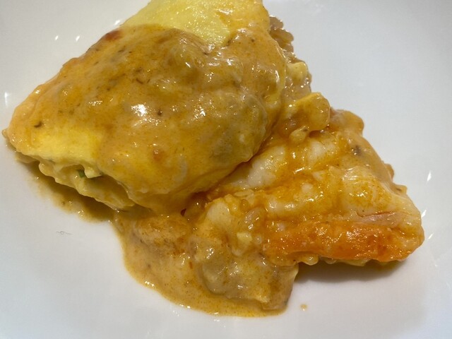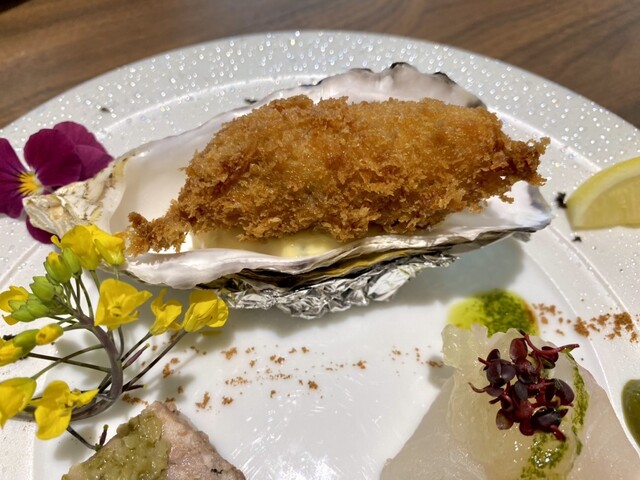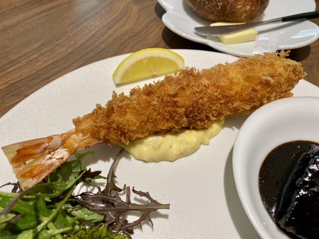 シェフに大きさを聞いたところ、手で表されたサイズが小ぶりでしたのでエビフライを注文したのですが、