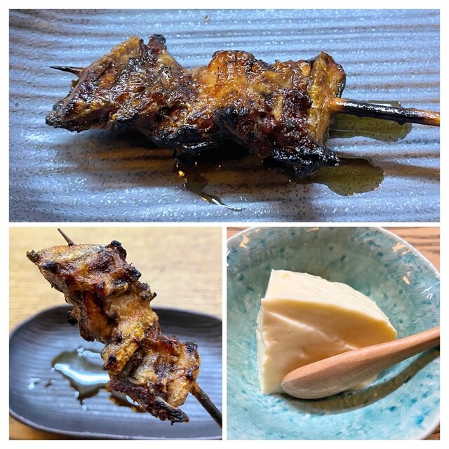 春に初めて予約を取れたかぶと。夏に2度目の予約が取れてしまう。仕事つながりの方をお誘いして訪問。今回は小上がりに案内される。前回は1人だったが今回は一緒に味わう相手がいて楽しい。前回と鰻の串は同じだが、仕入れによって分量は少し違うのかも知れない。それと豆腐やお新香だけでなく、おくらやトマトなど箸休めに出てくるものがこの日は多かった。おいしくて珍しい鰻の串に会話も自然と盛り上がり、お酒も進む。いろんな日本酒を試したが「むすひ」という少しクセの強いドブロクが僕は気にいった。シメの蒲焼きと白焼きのうな重。前回より天然鰻が大きく、これまた存分に味わえる。至福vol.2。