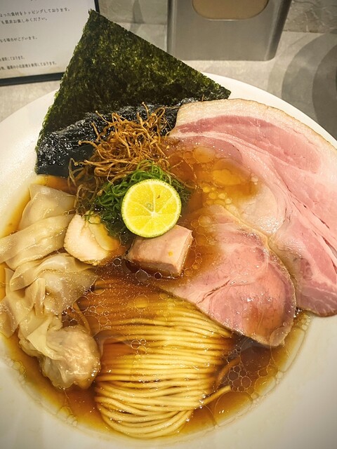 インスタか何かでたまたま画像が流れてきて、上品でおいしそうなビュジュアルの醤油ラーメンを食べてみたいと思った。ラーメン好きの友人が予約を取ってくれて初訪問。特上醤油を注文するか、やっぱりビジュアルが美しいSHIOにするかあれこれ考えて訪問前から楽しい時間を過ごす。入店ギリギリまで悩んだがグルメではない僕がいくらかでも味が分かるとすれば、食べ慣れている醤油ラーメン。他と比較もできるだろうと特上醤油と炙りチャーシュー丼、それにビールを注文。3000円超えてしまうが、そのくらいの期待感はある。エビスビール、炙りチャーシュー丼(チャーシューはもちろん鰹節とタレがおいしい)と順番に提供され、ワクワクしてくる。特上醤油ラーメンは写真で見ていた通りのビジュアルで興奮。名古屋の紫陽花のラーメンに似ている。つゆを口に含むと想像通りおいしい。歯応えある麺もつゆとよく絡んでいい感じ。チャーシューは柔らか。角切りのチャーシューはタレの味も染み込んでいておいしかった。個人的に過去最高の紫陽花のラーメンを超える(麺が紫陽花より好み)。ところでラーメン食べる時にチャーシュー丼を注文したくなるが個人的にこの組み合わせは今後やめようと思った。これは単純においしく味わえる量(腹)の問題。最後に店名もカッコいいね。