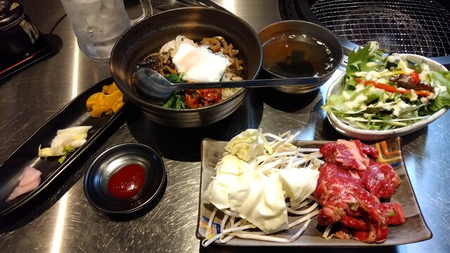 メインが 上質の "牛カルビ" & "ビビンバ" のランチで、1300円。サイドも、充実。