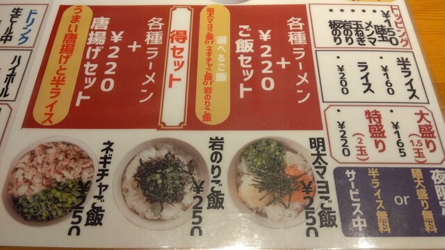 チャーシュー麺 + 明太マヨご飯 250円 + 唐揚げビッグ 750円