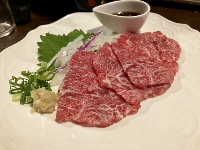 お一人様一本限りのハラミ串や新鮮レバー串、綺麗な馬刺しにモツ煮込み、軟骨入りハンバーグなどどれを食べても美味い!