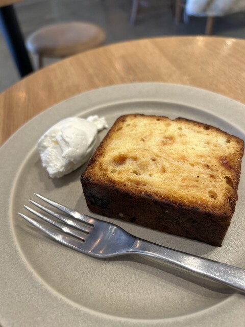 モカダンデライオンをアーモンドミルクに変更とアプリコットのパウンドケーキ(ホイップクリーム無料)。