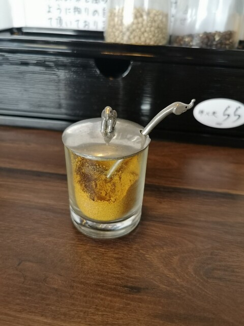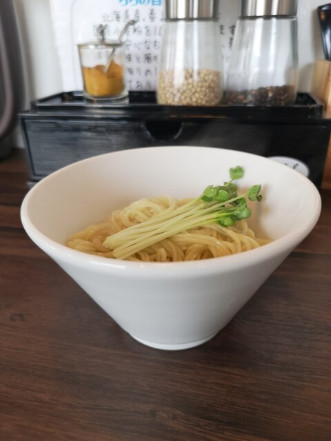 冷製貝出汁ラーメンのトッピングに「きざみわさび」や「レモン」が有ります!