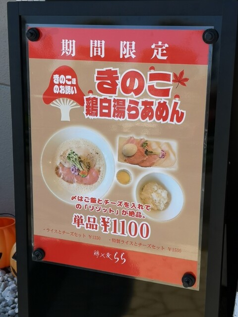 「らら」の秋味「きのこ鶏白湯らあめん」始まりました!!