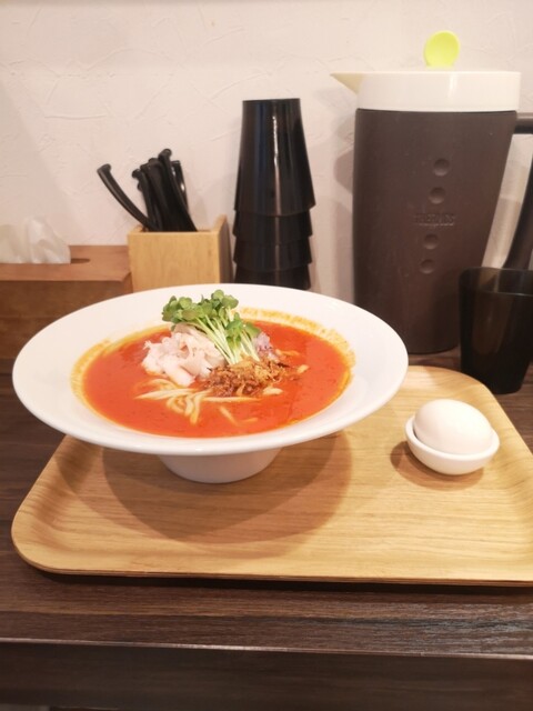 トマトラーメンに玉子と季節のご飯!