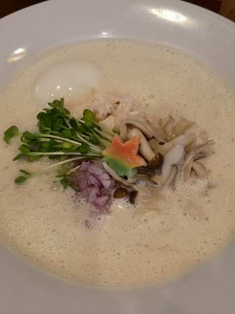 食べる前から予感させられる、泡白湯きのこスープ!