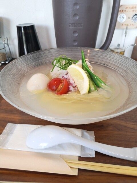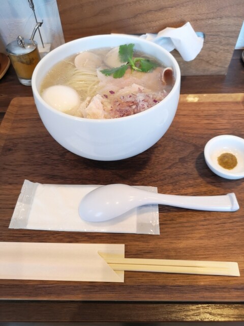 冷製貝出汁ジュレラーメン!冷え冷えですよ!玉子をプラスしてます。