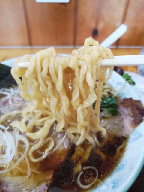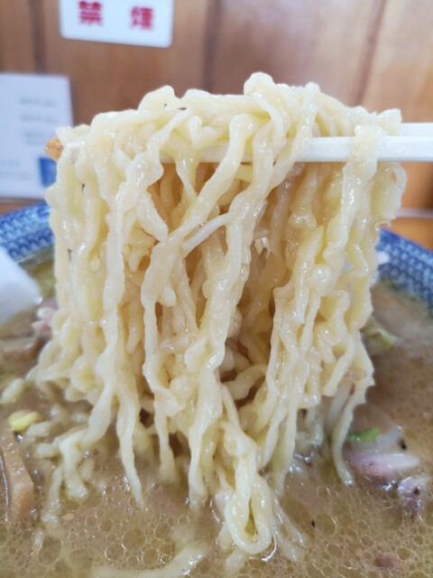 手打ち麺に手揉みのウエーブ!作るのに体力がかかりそうで、毎回頭が下がる思いです!いつまでも続いて欲しいと願って食べてます!有難う御座います!