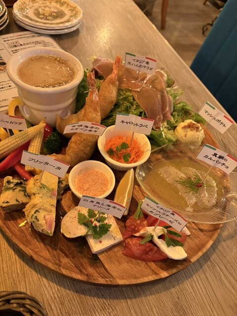 『前菜の盛り合わせ』とファーストドリンクを注文♪