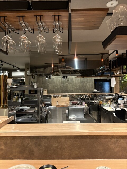 店内は広く中央に大きなオープンセントラルキッチン。囲む様にカウンター席があります。贅沢な空間使いです◎