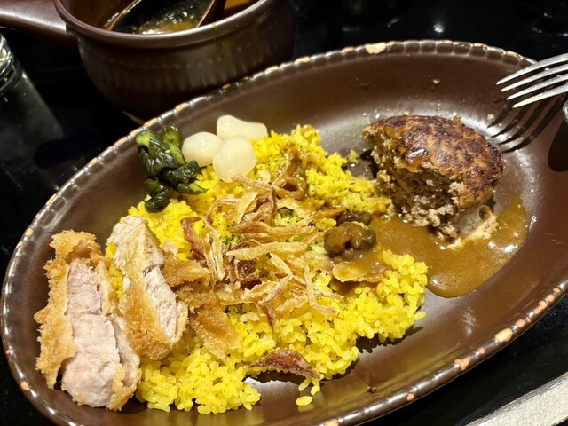 肉汁溢れるジューシーハンバーグと絶品壺焼きかれー✨