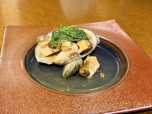 活あわび鉄板焼き…あわびが踊っている姿に心も躍ります。こんなに大きなあわび、いただいたことありません。とても絶品です✨