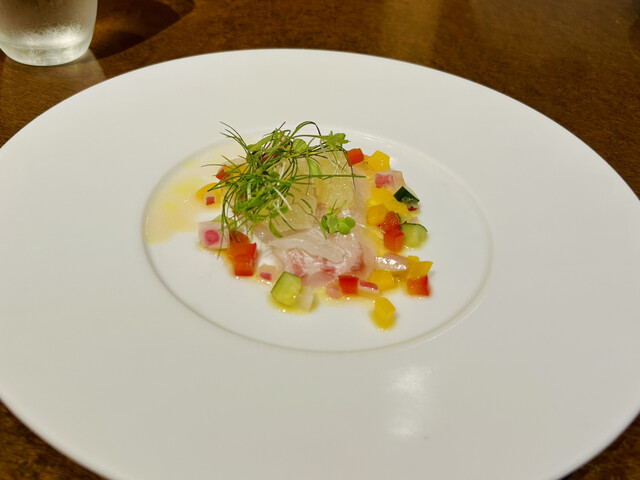 フルーツを使用した前菜…フルーツの酸味とお魚のカルパッチョが相性抜群です✨