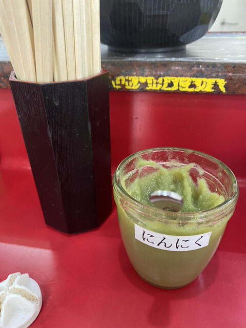 ラーメンの種類は1種類で、辛さや油の量を調整できる模様。最初なので全て普通(標準)にした。あとはトッピングがいくつかあったが、よく見なかった。
