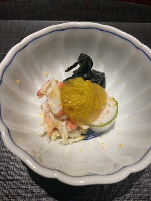 松葉蟹を入れた胡麻豆腐の白味噌椀