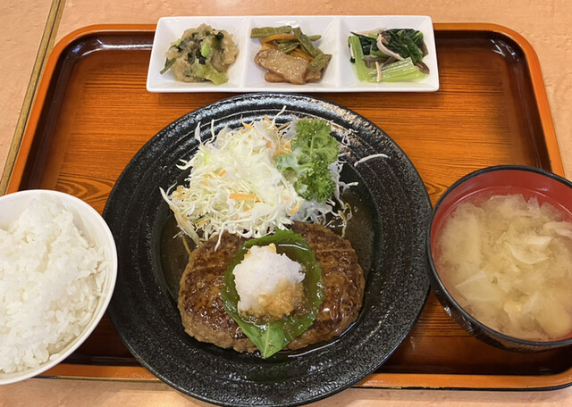 和風ハンバーグ定食990円。(映画の半券で-100円)2回目の来店です。店内の雰囲気は入りやすく席も広くすごく良いのですが、今回のハンバーグは私にはしょっぱすぎました。ハンバーグの和風ソースやサラダのドレッシングが別がけなら良いのに…とかなりがっかりしてしまいました。体力仕事や部活後の若者以外はみんなしょっぱいと思うと思います。ハンバーグは柔らかめで大きくて、歯が弱くても食べられると思います。また、白米は気持ち柔らかめなのでやっぱり気持ち高齢者の方向けなのかなあ…。本当にしょっぱかった。同行者に食べてもらってなんとか完食。量多めです。同行者のトンカツは美味しかったので、そちらの方がおすすめです。