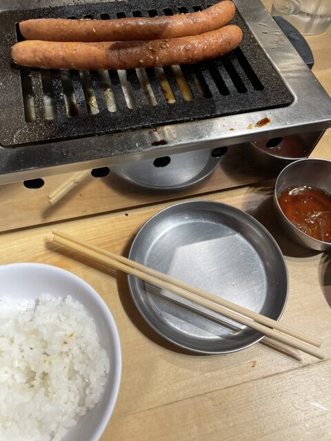 長いウインナーを4分割ほどにして周りがカリカリになるまで焼くとこれが米に合う。