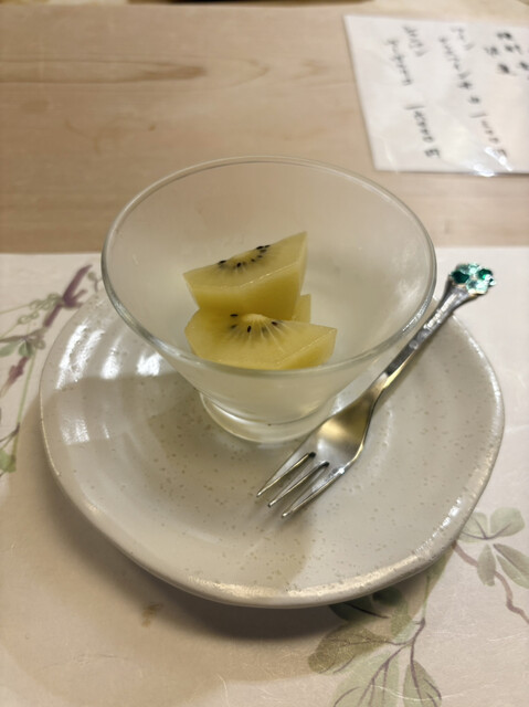 木曜と金曜しか営業していないお店。入り口は隠れ家のような雰囲気。店内はカウンター席とテーブル席、個室もありました。コースのみ提供しており4つの中から選びます。
