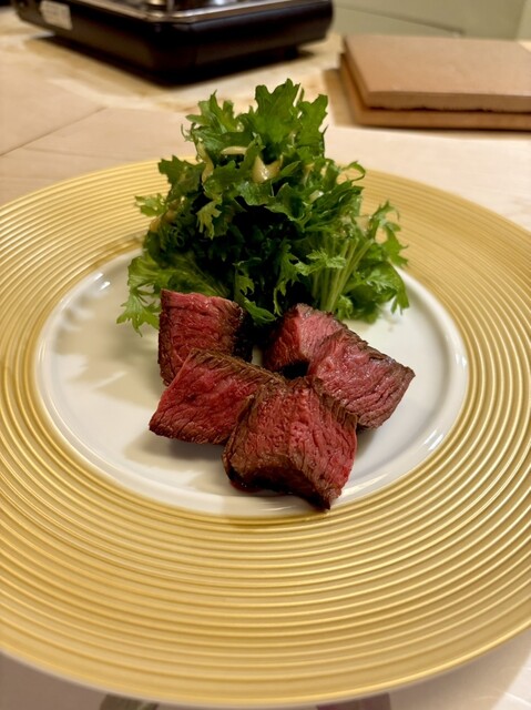 脂肪が少なく赤身が中心で食べ応えがあります。旨みがすごい。水菜もたっぷりでコーンのドレッシングが美味しすぎてペロリと完食。