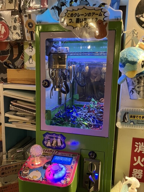 クレーンゲームやガチャガチャもある、遊び心抜群の空間(もちろん中身はペンギングッズ)