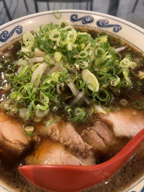 ラーメンは黒い醤油のスープで、しっかりとした味付けですが、トッピングの素材たちはスープに負けない存在感でした。